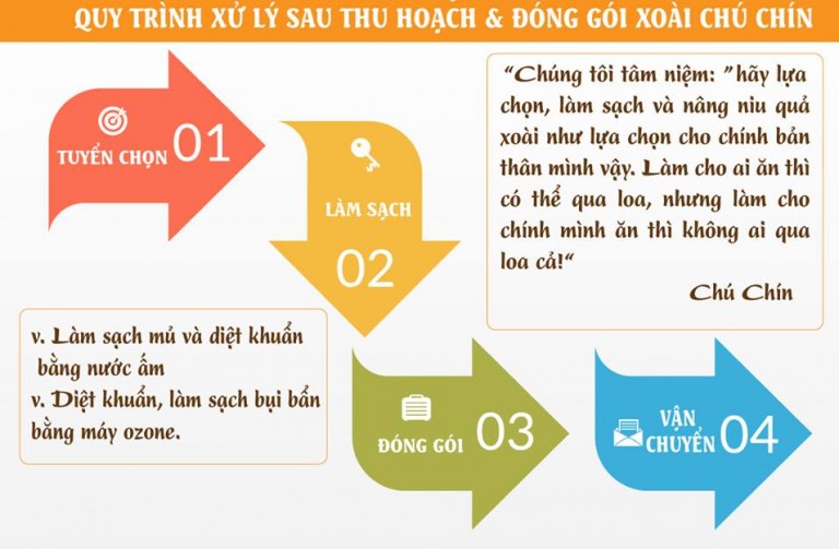 Còn đối với Xoài Chú Chín thì điều căn bản thứ nhất chính là am hiểu về trái xoài, thứ hai sau khi hiểu sẽ bắt đầu yêu và sau khi yêu sẽ bắt đầu truyền được cảm hứng cho khách hàng.